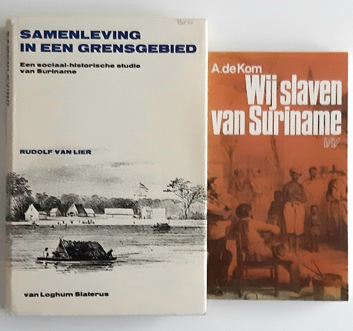 waarvan nota bene een Surinamer de medeschrijver was. De ontwikkeling van de Surinaamse geschiedenis (1e dr. 1953) was een leerboek dat op alle muloscholen, de Algemene Middelbare School (AMS) en de Surinaamse Kweekschool (SKS) tot in de jaren tachtig werd gebruikt. De studenten van de Surinaamse Kweekschool (SKS) kregen les van de toen nog kandidaat-historicus André Loor, een aimabele man en een boeiende verteller. Wij, studenten van de avondopleiding, moesten regelmatig veel aantekeningen van het bord overschrijven, wat ik niet deed. Op de Hendrikschool (mulo) heb ik Vaderlandse geschiedenisles gehad van de spierwitte lerares Arpots. We gebruikten een geschiedenisboek van de hand van De Haan. Ik ‘zag’ in mijn fantasie in de Oudheid Griekse en Romeinse galleien op de Middellandse Zee varen, geroeid door tientallen mannelijke slaven. In mijn beeldvorming waren al deze roeiers zwarte slaven uit Tropisch-Afrika. Ook dit beeld was niet correct. Immers, vele galeislaven waren veroordeelde misdadigers. In het derde muloleerjaar vertelde de korte meester Del Prado veel over de slavernij in Suriname en de moedige strijd van de marrons tegen plantages en koloniale witte en zwarte militairen. Pijnlijk was het om te horen, dat Afrikaanse slaven gekocht werden om als soldaten te vechten tegen hun soortgenoten, die vrijheid en veiligheid achter de watervallen of in onherbergzame moerassige gebieden hadden gezocht en dat enkele marrongroeperingen elkaar zelfs jarenlang bestreden hebben. De dramatische onthoofding van Bonni door een op wraakbeluste vijandige marrongroepring emotioneerde mij hevig, evenzo het verraad van Memre Boekoe in het Cotticagebied, een marronvesting o.l.v. Baron. Ook de rol van de marron- en inheemsenstammen, die vrede met de koloniale overheid in Paramaribo hadden gesloten en bepaalde vredesbepalingen hadden moeten aanvaarden, waren voor mijn gevoel dubieus. Via literatuur voor het vak Caraïbistiek leerde ik over blanke slaven, contractarbeiders, schuldslavernij in Amerika en misdadige ontvoeringen in de haven van Bristol. Voor mij waren geschiedenis en aardrijkskunde vakken die je zelfstandig, zonder een jaarlang lessen te volgen, uit boeken kon leren. Dat deed ik in 1969 samen met Maurits S. Hassankhan voor ons hoofdonderwijzersakte-examen. Maurits studeerde in Groningen als historicus af. Vóór 25 november 1975 keerde hij naar Suriname terug. Zijn doctoraalbul ontving hij thuis in het district Wanica per post. Worteling van slavernij in religieuze geschriften